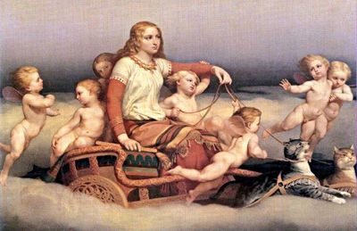 Dans la mythologie scandinave, on le représente tirant le char de Freya, la déesse de l’Amour.